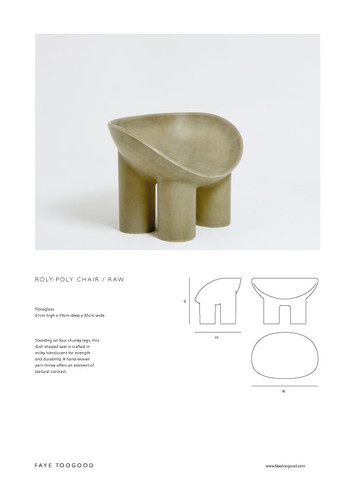 A collaboration with designer Faye Toogood. ROLY POLY CHAIR by TOOGOOD Standing on four chunky legs this dish-shaped seat is crafted in raw fibreglass for strength and durability. Located in Brooklyn NY.