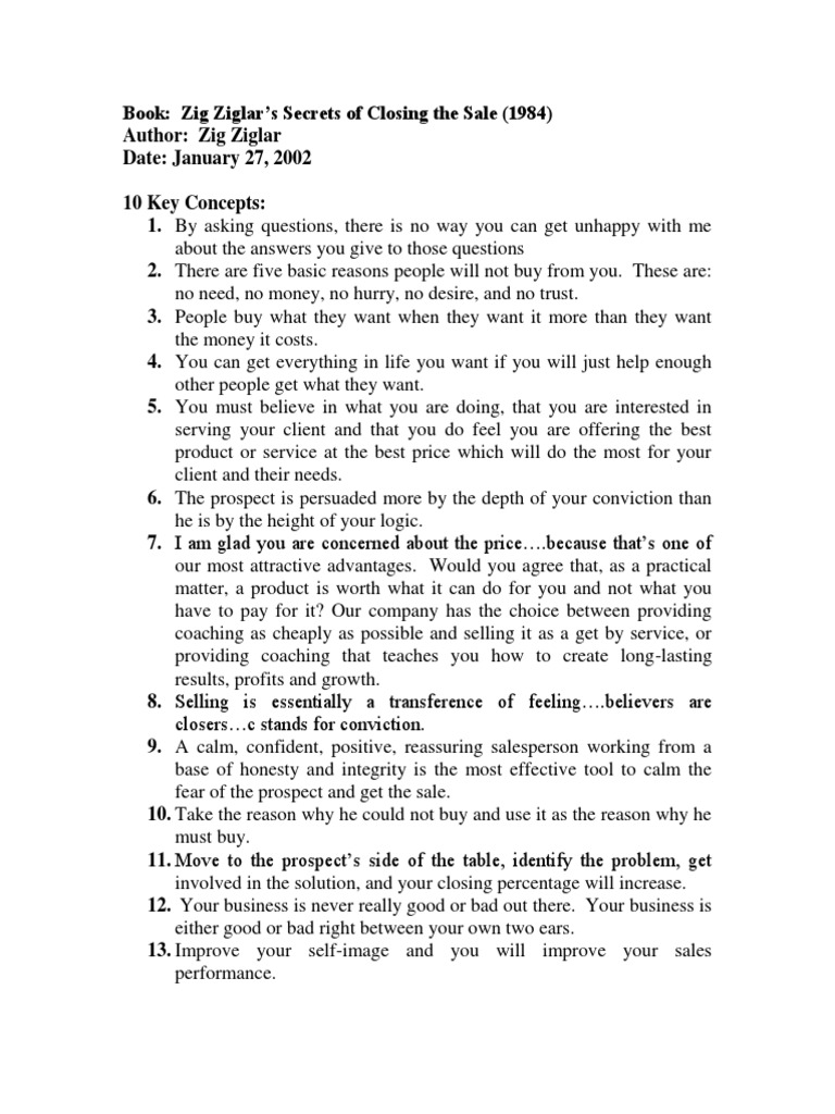 Book Selling 101 Zig Ziglar Summary In Pdf